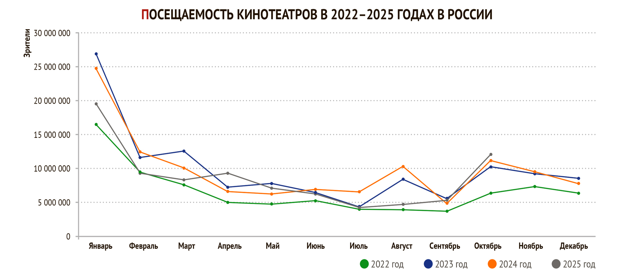 Напомним, что в докризисном 2019 году с января по сентябрь в кинотеатры пришло 159,7 млн человек. С момента ухода мейджоров максимального пика посещаемость достигла в 2023-м, когда было продано 91 млн билетов. Разница в посещаемости 2023 и 2019 годов очевидно вызвана отсутствием студийных фильмов, но различие между 2025 и 2023 годами, когда ситуация в кинопрокате уже пришла к новой норме, а на больших экранах стали чаще появляться блокбастеры российского производства, объяснить уже гораздо сложнее – и логично предположить, что одним из факторов могла стать цена билета. Два года назад она составляла в среднем 309 рублей; ее рост за этот период достиг 37%.